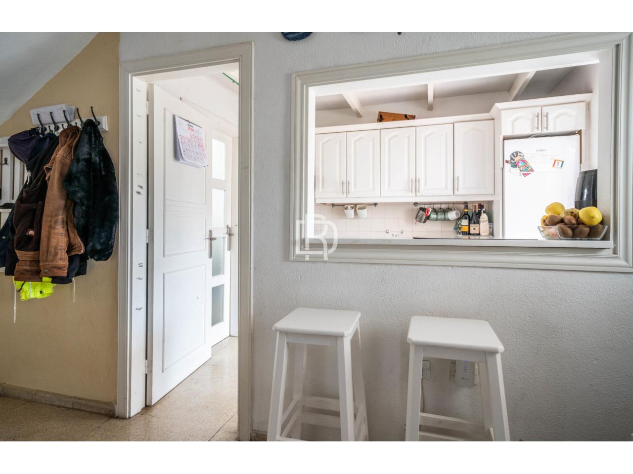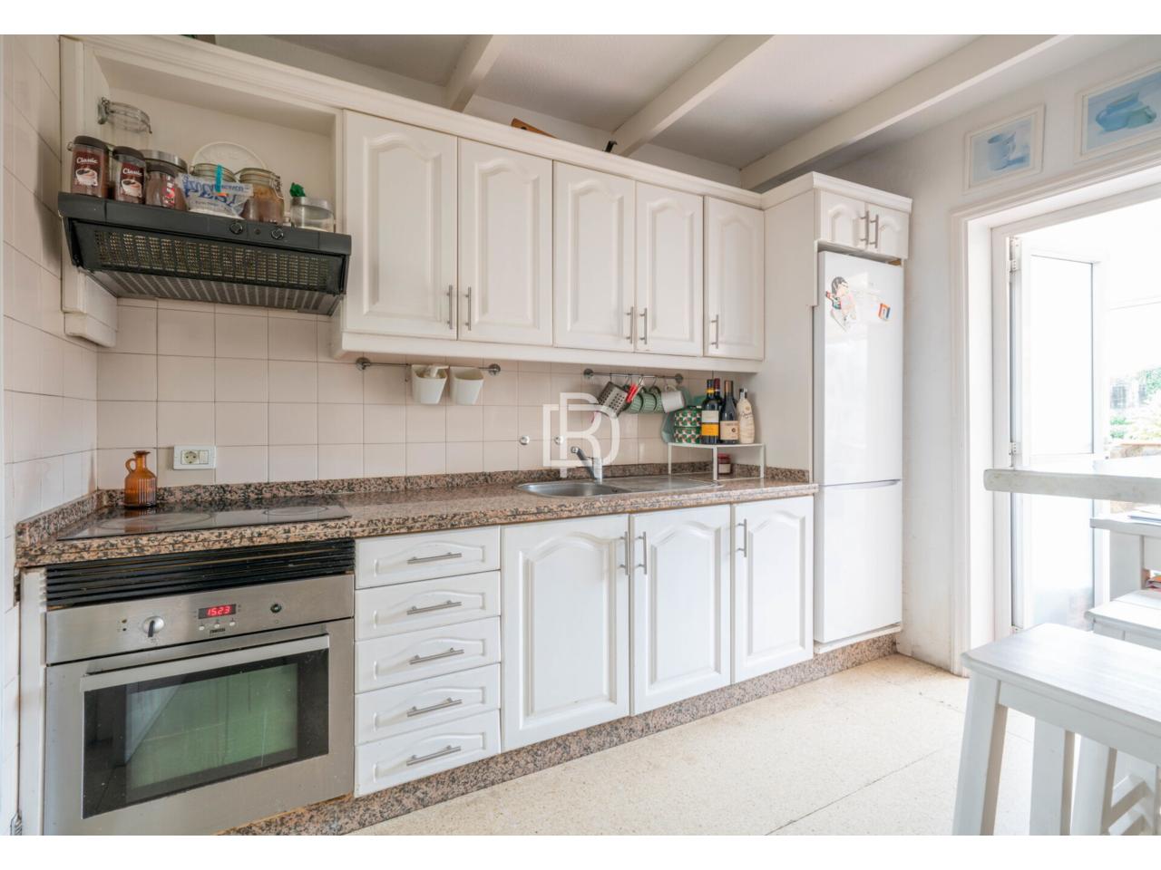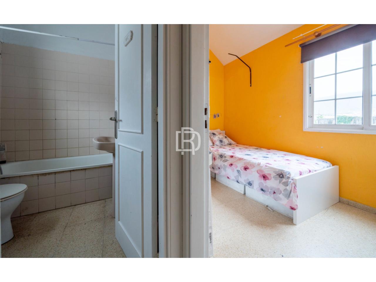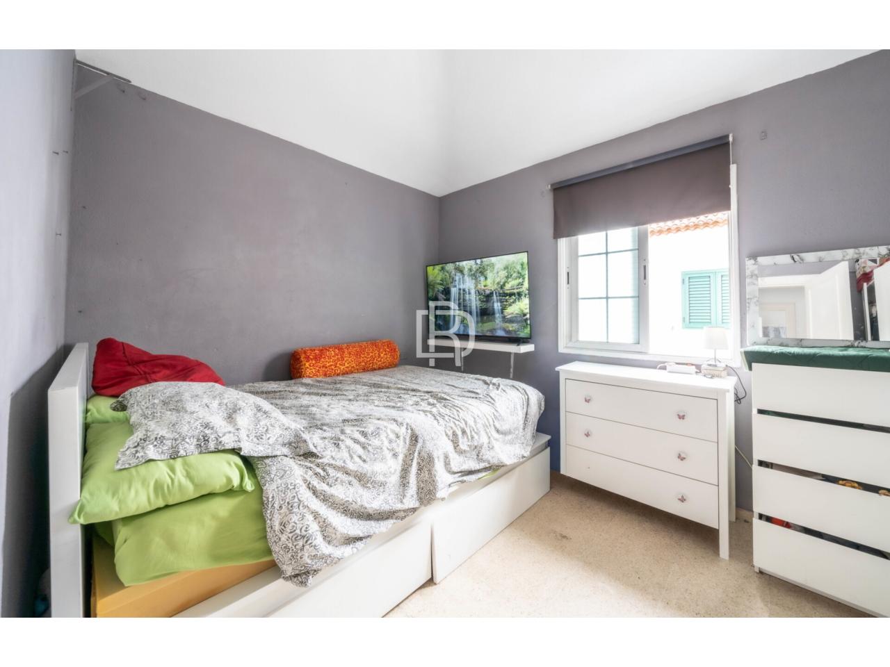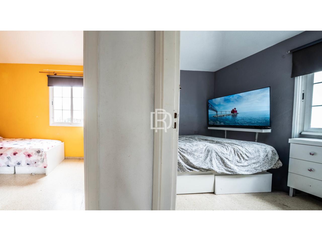 La propiedad se distribuye en tres niveles y ofrece una distribución muy cómoda y funcional. En la planta superior dispone de dos dormitorios dobles y un baño completo con bañera, conformando una zona de descanso práctica y bien diferenciada. En la planta principal se sitúa un acogedor salón que conecta con una amplísima terraza techada con grandes ventanales al exterior, además de una segunda terraza al aire libre, lo que permite disfrutar de distintos ambientes y garantiza una excelente entrada de luz natural durante todo el día. En esta misma planta encontramos una cocina completa y funcional y un pequeño patio, ideal como zona auxiliar o de desahogo. En el nivel inferior se ubica un enorme dormitorio independiente, un espacio muy versátil que puede destinarse tanto a dormitorio principal como a habitación de invitados, despacho o sala polivalente.