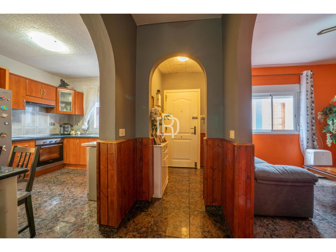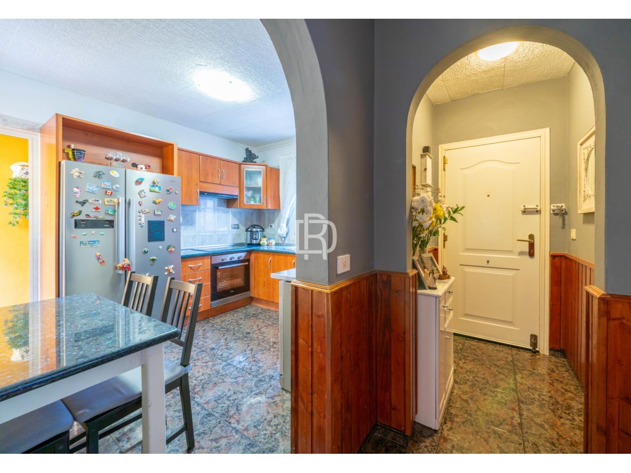 Accedemos a través de un recibidor que da paso a tres habitaciones, una cocina completamente equipada, un baño amplio con entrada de luz natural desde el patio interior, una despensa y un cuarto de lavar.