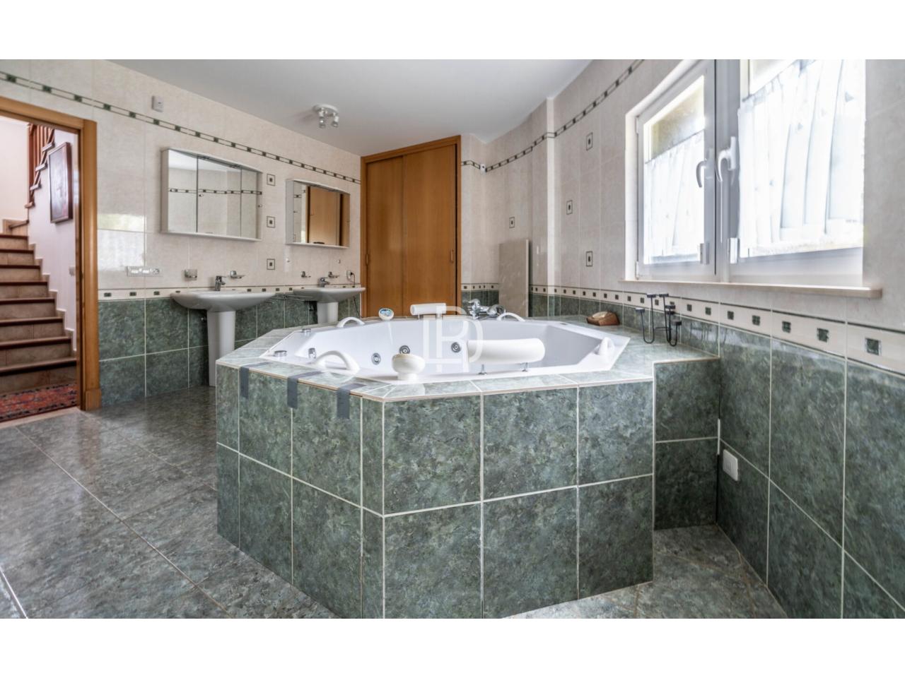 En la planta principal, un gran salón-comedor con acceso directo a la terraza soleada se conecta con una cocina semiindependiente equipada con despensa, barra de bar, ideal para momentos familiares o recepciones; esta planta también cuenta con entrada principal, baño con ducha, jacuzzy, sauna y doble lavabo, dormitorio principal con vestidor habitación de invitados con baño propio, sala despacho versátil para teletrabajo, aseo con acceso directo al jardín y cuarto de lavadoras.