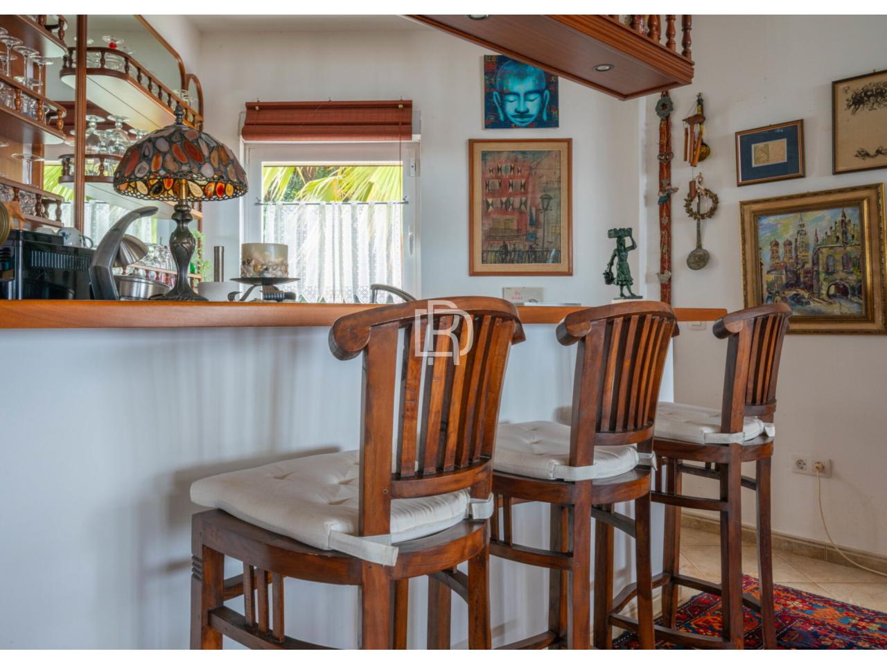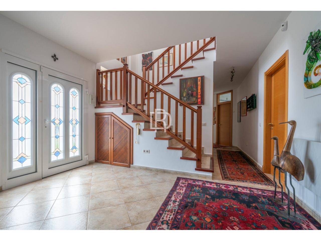Esta espectacular propiedad de 392 metros cuadrados construidos sobre una parcela de 2.802 m² mixto urbano-rústico ofrece 7 dormitorios, 3 baños completos, piscina privada con sistema automático de cloración, terraza soleada con vistas panorámicas al mar y montañas, jardín zen paisajístico, sauna finlandesa, jacuzzi, garaje doble, sistema de seguridad avanzado con cámaras y sistema solar con alto grado de autosuficiencia energética.